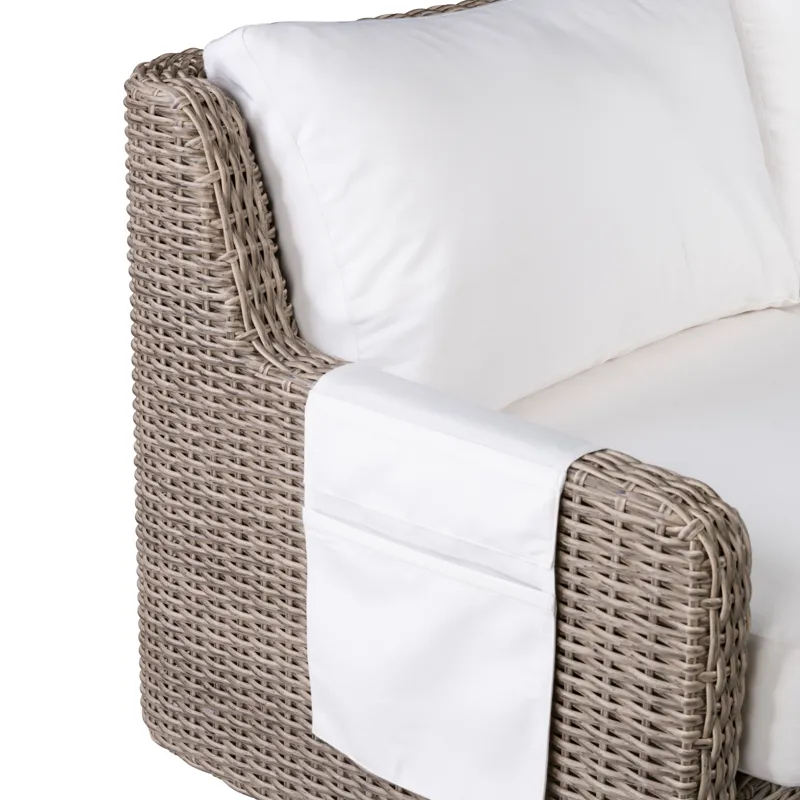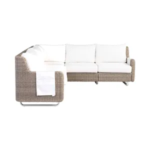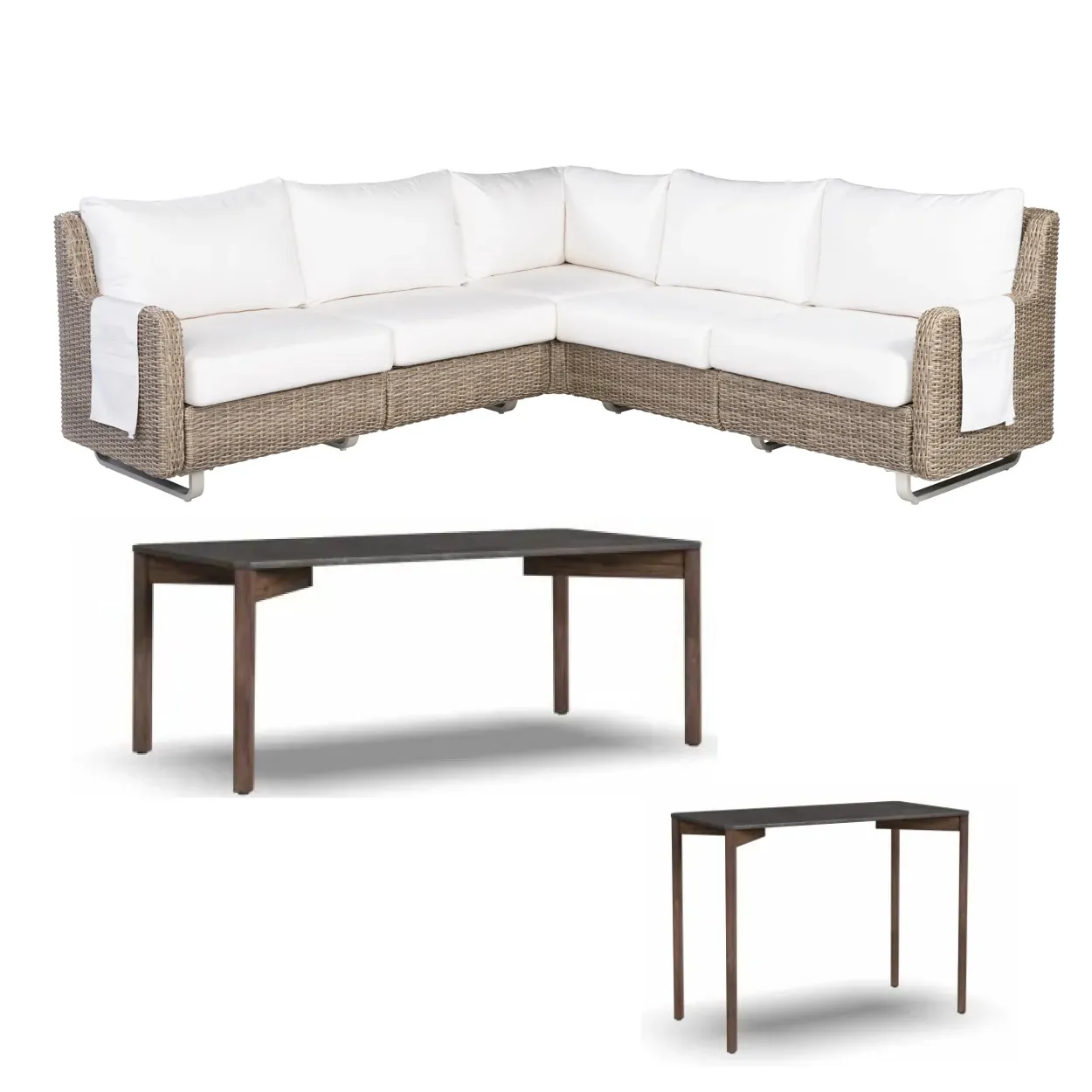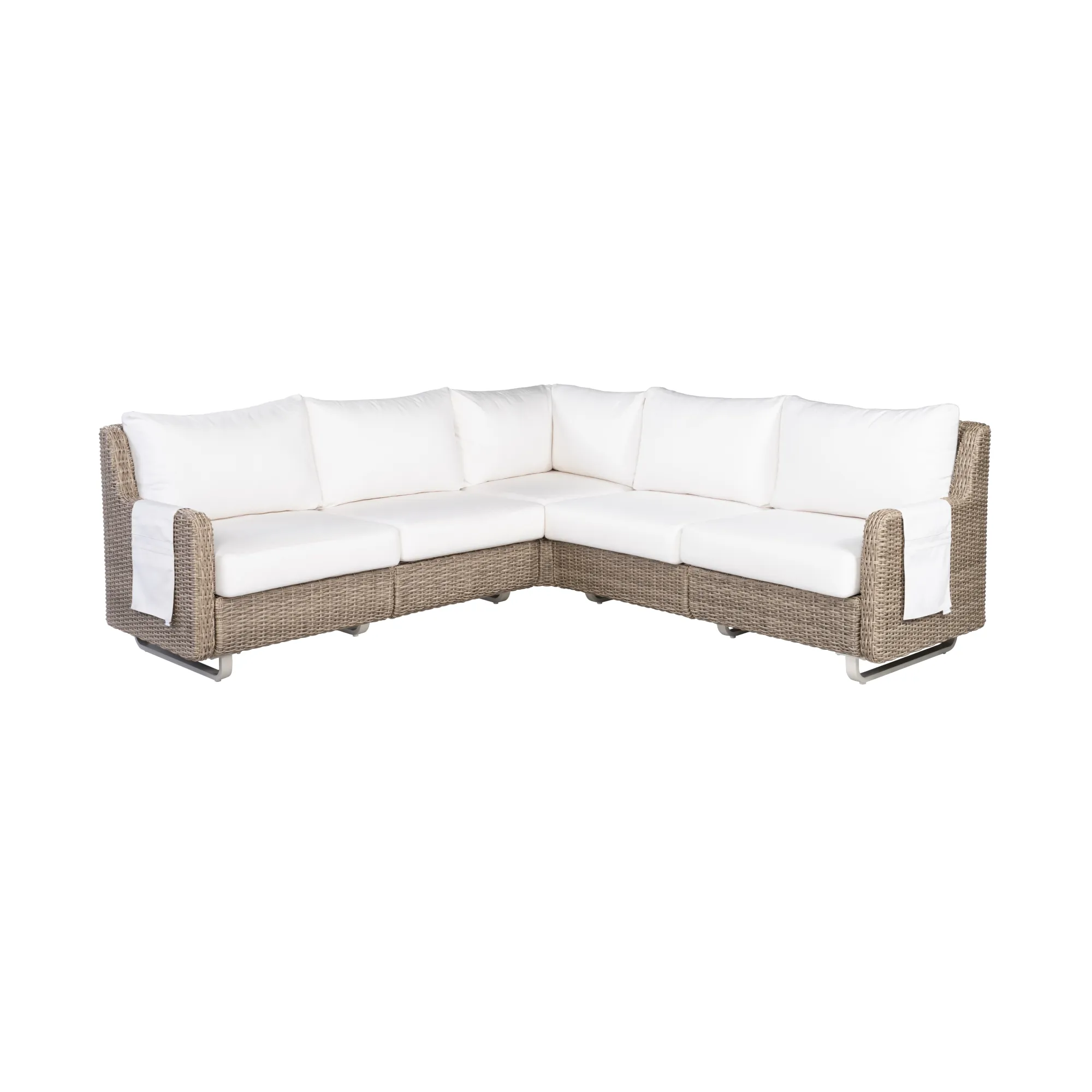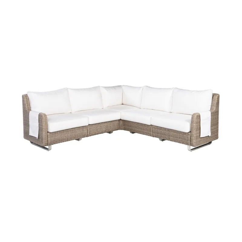 Transform your outdoor space into a luxurious lounging space with the soft curves of the Vista 5-seat outdoor sectional. This plush and generously scaled modular sectional exudes comfort, while the warm gray wicker, aluminum swivel base and natural-colored Sunbrella performance fabric upholstery provide weather-resistance for year-long enjoyment.